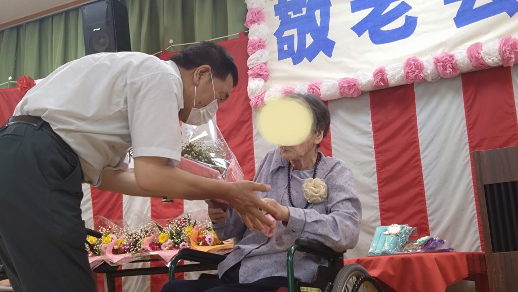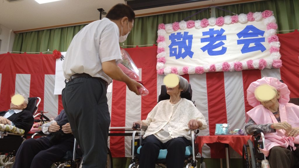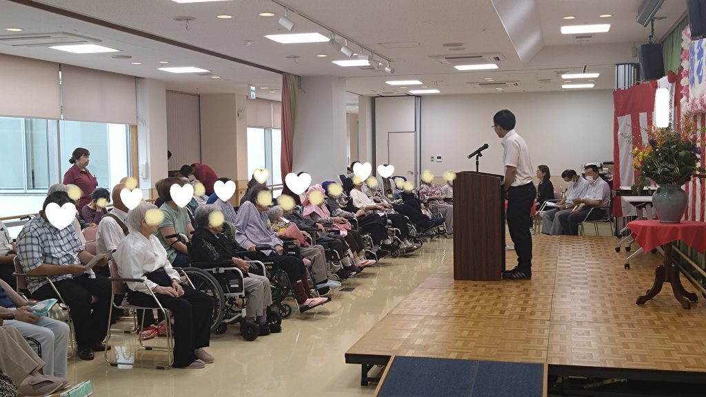 まだまだ暑い日が続いている中、敬老のお祝いに今年もたくさんのご利用者ご家族が参加して下さいました。ありがとうございます